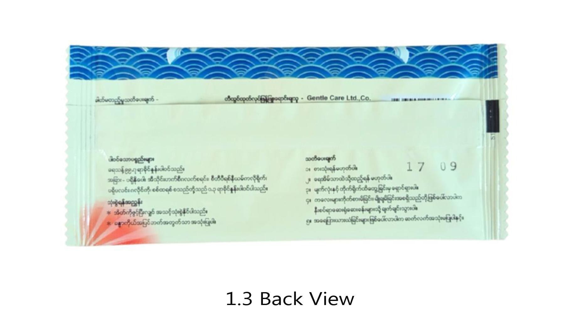 Refreshing Towel ၏ ထုပ်ပိုးမှုဒီဇိုင်းကိုလျှောက်ထားခြင်းဖြစ်ပါသည်။ စက်မှုဒီဇိုင်းတွင်ပါရှိသော စာသားများ၊ စကားလုံးများ၊ ကိန်းဂဏန်းများ၊ သင်္ကေတများ၊ Barcode များကို တစ်ဦးတည်းအသုံးပြုမှုနှင့် စပ်လျဉ်းသည့်အခွင့်အရေးကို တောင်းဆိုမှုမရှိကြောင်း တင်ပြအပ်ပါသည်။